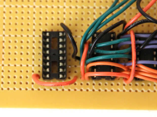 Una tercera toma de 16 pines a la protoboard de la soldadura, esto será para el 74HC165. Conectar los 5V a la clavija 16 y tierra al pin 8.