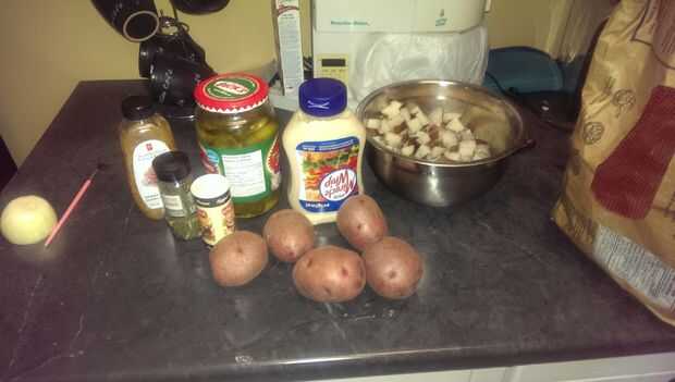 Me olvidé de tomar fotos de la tajada que dos sus papas a su tamaño deseado y hervir hasta que el tenedor puede ir a través. Chill.