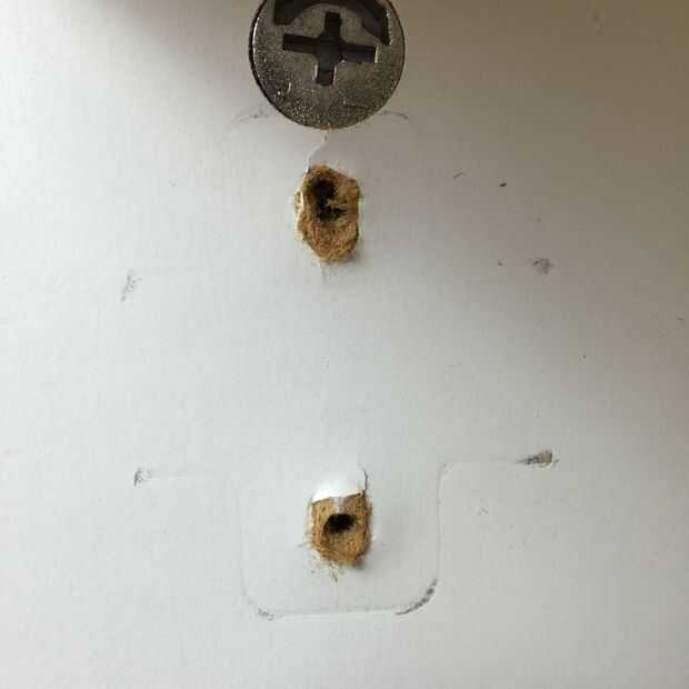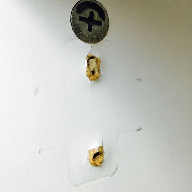 Iv tenía mi inspiron e1505 para cerca de un año y la pantalla ha empezado a tambalearse con el menor contacto. Me di cuenta de una de las pequeñas pegatinas que oculta los tornillos había caído con detenimiento, que noté que el tornillo estaba sosten