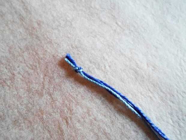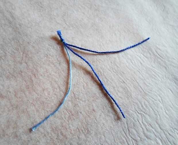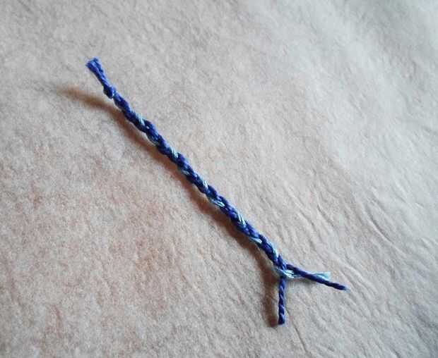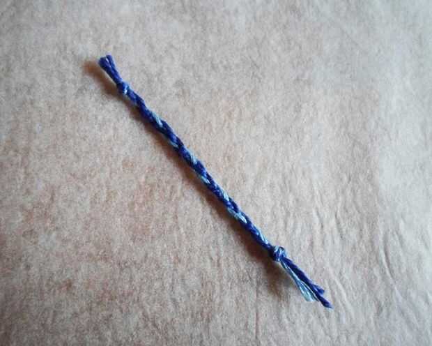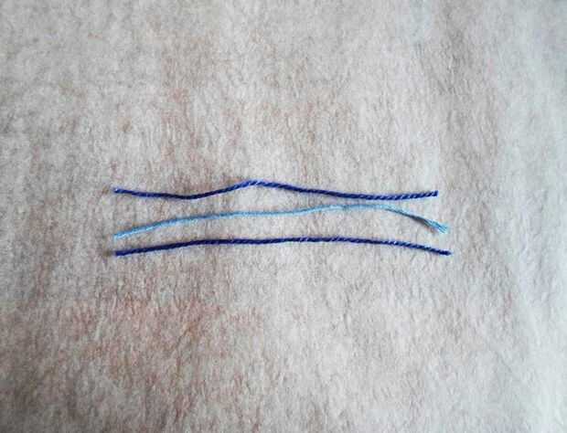 Para ello, necesita 3 hilos de algodón, usé un hilo de luz azul y 2 unos de azul oscuros.