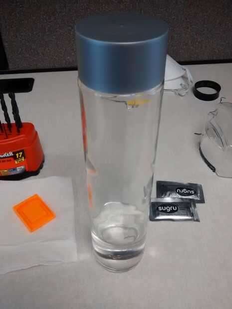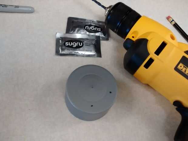 He visto un montón de gente simplemente Sugru a artículos y confiar en que se adhiere fuertemente bastante sobre su propia. Mientras que estoy seguro que funcionaría muy bien, ya que es cristal, he tomado una precaución extra. Aquí, taladró agujeros en la tapa de la botella donde quería el lazo, con los agujeros de caer cerca de las esquinas del diseño de lazo.