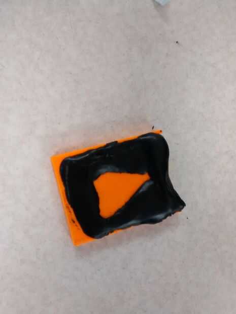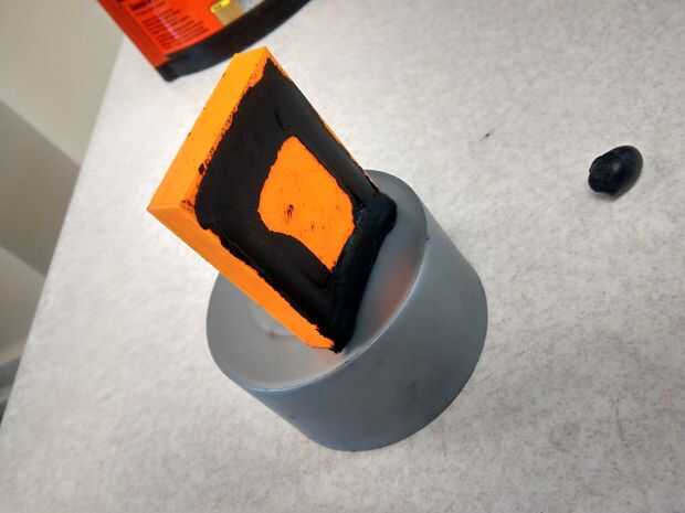 Tomé el molde y cubierta con una película de jabón y agua para actuar como un agente desmoldante. Entonces empujé un montón de Sugru en el molde, forzarlo con mis pulgares, hasta que desbordó. Una vez que hubo suficiente Sugru, me volcó el molde y presiona contra la mesa para suavizar el lado abierto. Una película de agua jabonosa ayuda aquí también, a prevenir la Sugru se pegue a la mesa.