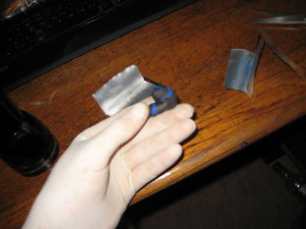 Luego tienes que abrir tu sugru con el par de tijeras y lo elimine.