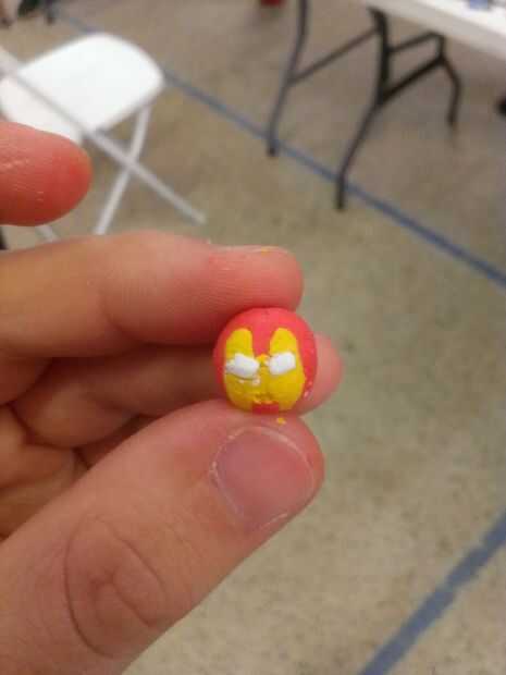 A continuación coge el amarillo Sugru y rellene todos los espacios que no tienen ningún Sugru. Aproximadamente debe estar en la forma de la sección que corte antes. Una vez que estés feliz con la sección amarilla, el cuchillo x-acto y quitar algunos Sugru de la zona de los ojos. No te preocupes la forma demasiado mucho aquí como usted puede ir y forma de los ojos mejor cuando se agrega blanco Sugru,