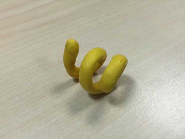 Cuando esté satisfecho con la suavidad de su atadura de cables, moldear suavemente en una bobina suelta. Tenga cuidado de no apretar o mal forma Sugru, ya que sigue siendo bastante flexible en este punto. Los extremos son especialmente sensibles, no queremos ningún alambre twist tie empujando hacia fuera!