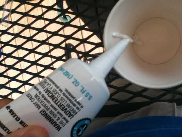 Poner la cantidad de sellador de silicona que desee en el vaso de plástico, la mezcla es 50/50 por lo que vas a poner la misma cantidad de almidón de maíz en la taza como pones sellador de silicona.