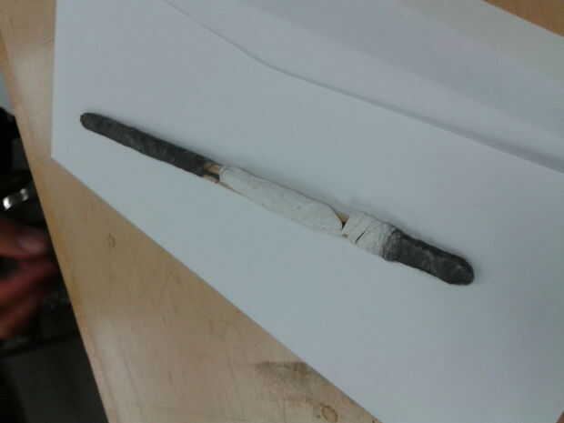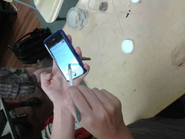Use un palillo de skinner o lápiz, wrapp alrededor de la longitud de la palanca de la fibra conductora, entonces sugru alrededor de la fibra y el palo para mantenerlos juntos y como el dedo sujetando el punto del molde. Listo para ser utilizado como puntero de la pantalla de tacto.