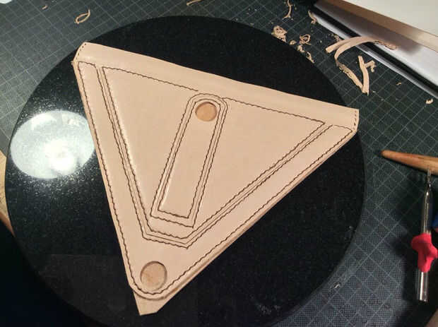 Para aumentar la rigidez, he utilizado 1mm estireno hoja intercalada entre las capas de la piel donde sea necesario, corte 5 mm menos que la dimensión de los soportes. Esto permitió pegar y luego cosiendo, pero significó que no necesitaba a puntada a través del estireno.