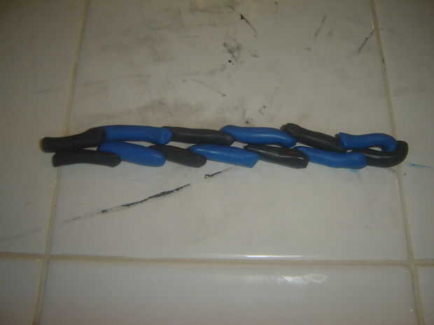 Conecte las piezas en cualquier orden que usted prefieran. Sobreponga los extremos un poco para que cuando ruedan juntos, luego colores peguen uno al otro. Doblar la longitud de Sugru mitad superponer la tira como se muestra a continuación.