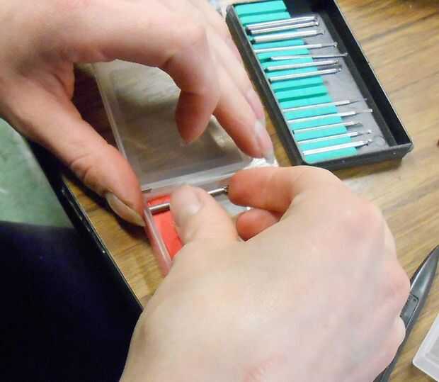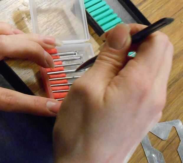 Ordenar las rebabas que van en la caja y después iniciar la incrustación en el Sugru. Quiera les capa con algún tipo de aceite para que no se pega el Sugru, pero salió con no hacerlo. Presione hacia abajo sobre ellos tan las envolturas de masilla sobre los lados un poco, sosteniendo las fresas en su lugar. Lo más probable es que esto arruinará los bordes perfectamente alineados en el paso anterior. Arreglarlo un poco si el aspecto final es importante.
