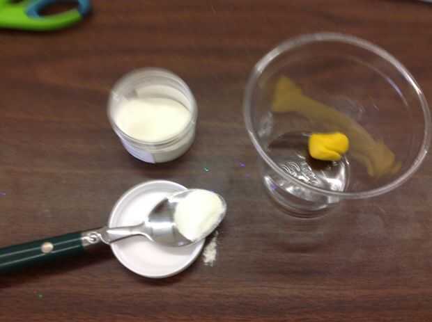 Abra su Sugru y colocar en la taza. Abra su glo en polvo y agregar una media cucharada a tu taza.