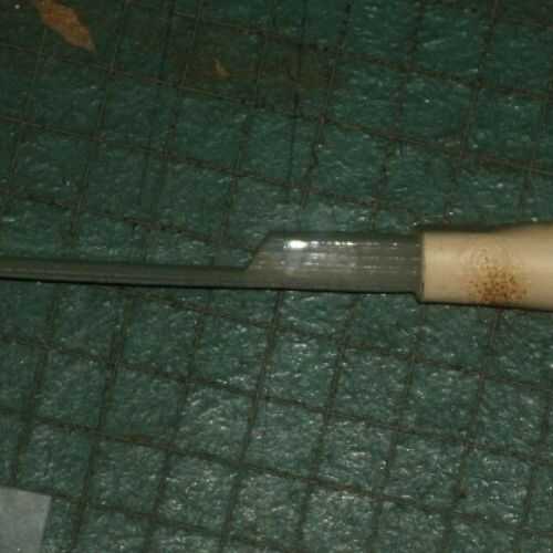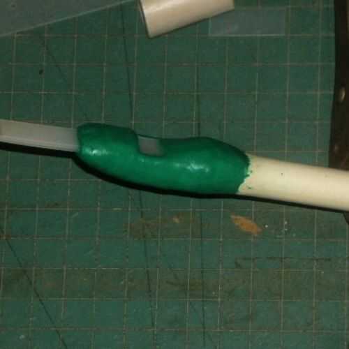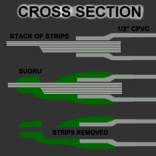 Después de calentar el extremo de un trozo de tubo CPVC de 1/2 pulgada para ablandarlo (como el PVC, sólo para el uso de agua caliente), he insertado la pila de tiras y aplastó el CPVC caliente abajo sobre ellos para mantenerlos. Calienta el CPVC con un soplete de propano. Tenga cuidado de no quemarlo, como el frumes son tóxicos. Usé un pedazo más largo de CPVC, que hace más fácil trabajar con y luego cortar el tubo a la longitud