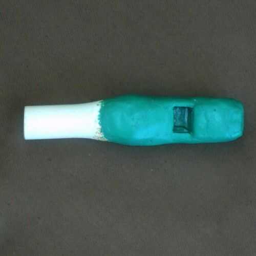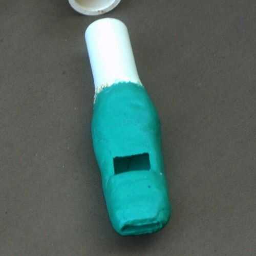 Para hacer el silbato perfecto, hubiera preferido hacer muchas boquillas, cada uno un poco diferentes, modificando la forma del canal del aire interno (ancho de las tiras de plástico utilizado para formar) y el ángulo de la cuña que crea el sonido. Toma una buena cantidad de aire para este instrumento. Canales de aire más pequeños utilizarían menos aire, pero sería probablemente crearía menos volumen, también. El instrumento final podría ser mejor, estoy seguro, pero al menos funciona.