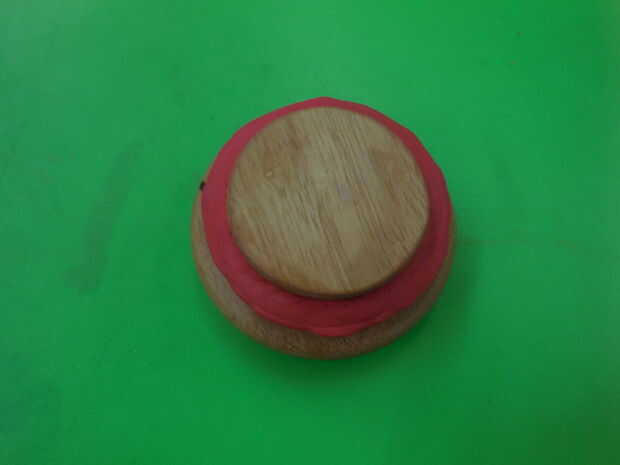 Utilizamos Sugru rojo puesto que era más cercano al color original. Con el fin de obtener suficiente anchura tuvimos que construir la junta con varias cadenas de Sugru.