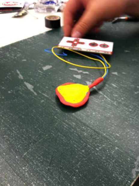 Conexión a tierra cuando el teclado Makey Makey quita un poco de la diversión, como esto a menudo significa que usted extremo para arriba con un alambre a menudo enganchado a su muñeca o en su mano. Por lo tanto, Divya ocurrió la excelente idea de po