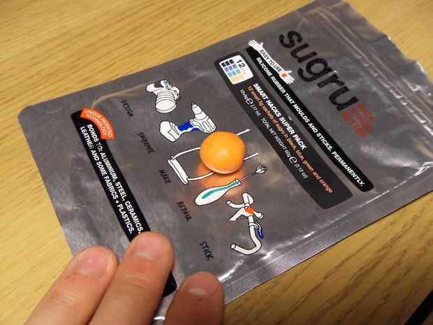 El paquete de papel grande de la "Smart Hacks Super Pack" que me dieron gratis de Instructables hace una estera del gran juego. A diferencia de mi escritorio no empaparse de la Sugru, además es fácil de limpiar después, también a diferencia de mi escritorio.