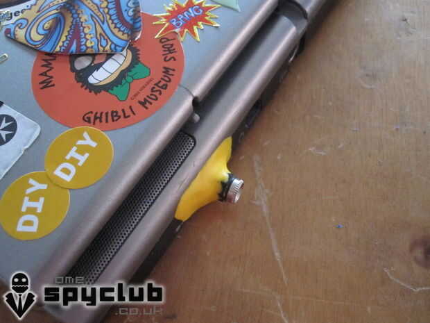 Luego usé un cuchillo de rayar a algunos del barniz en el donde la sugru iba a ir. El sugru hace un buen trabajo en el que se pega el barniz, pero encontré que el barniz no hizo un buen trabajo en el que se pega a la laptop.