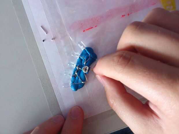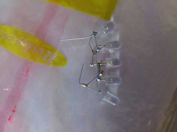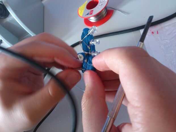 Empezar por las patas de los leds a otro como lo hicimos en el esquema de soldadura. En el lugar de una resistencia de pone un potenciómetro. Utilice sólo dos de las piernas, el mediados y uno mas. Cuando acabes con Conecte las piernas más largas de los leds «+» del cable usb que tienes. Puede utilizar un multímetro para comprobar que uno es el positivo. Después de que conecte el "-" alambre a las otras patas de los leds. Compruebe si funciona. Si todo está bien tomar el sugru de que color te gusta y poner todo los leds. Finalmente hacer dos pequeños ganchos con lo sugru y sujete a la parte posterior de los leds. Eso es todo. Espere hasta que se endurezca la sugru y uso que está listo para ir.