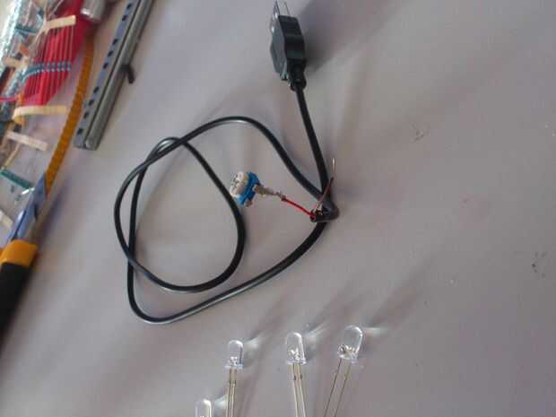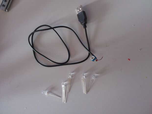 Algún viejo gadget usb con cable que no está funcionando. Simplemente use el cable para conectar los LEDs a él