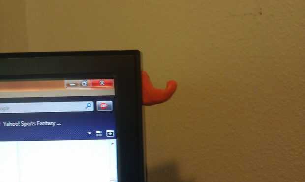 Dobla el gancho hacia arriba y alrededor. Poner un poco de agua en los auriculares donde descansar y montar el interior del gancho a ese lugar. Una cosa a tener en cuenta al formar el gancho es la gravedad. Tarda un rato el sugru configurar así que puse una poco curva excesiva en el gancho y apoyado contra la punta para mantener el gancho de la comba (Recuerde mojar nada tocar el sugru que no desea como parte de la sugru).