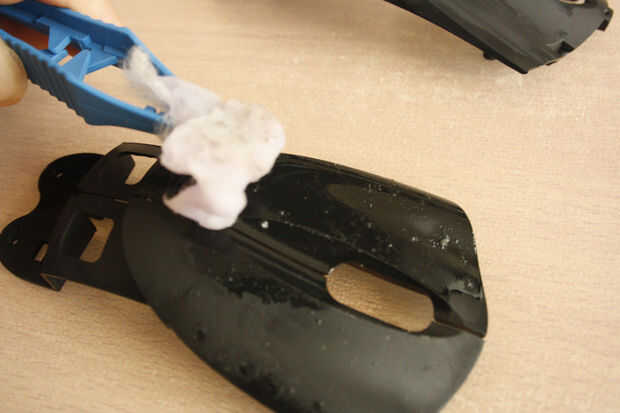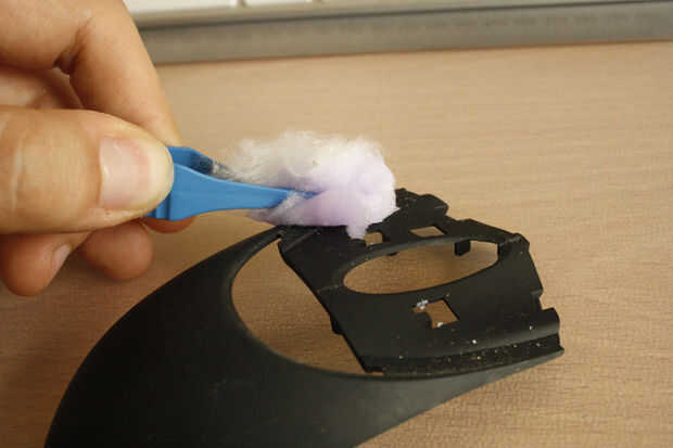 Viento una pequeño algodón alrededor del extremo de la pinza y sumergir en su elegido líquido de limpieza, fácilmente debe tira toda la grasa y suciedad, a cualquiera de las opciones de base de alcohol se evaporará, o usted puede utilizar algodón seco un poco para quitar exceso.