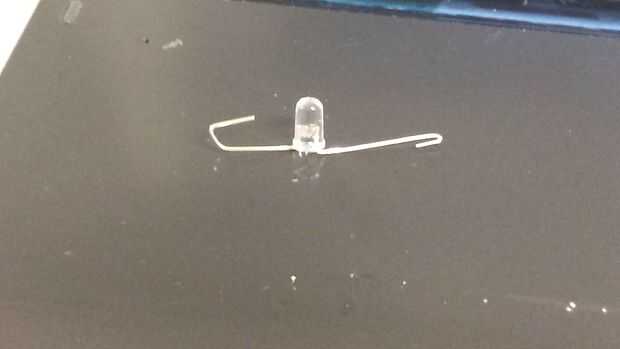 Para preparar los LEDs, dobló la conduce directamente a la parte inferior de la LED en direcciones opuestas. Asegúrese de que te acuerdas de cuál era más largo. El truco que a mi me funciono mejor fue doblar los cables en el LED de una determinada manera. El ánodo (+), que es ligeramente más largo que el cátodo (-) fue doblado en un gancho apretado por lo que era plana cuando se mira desde la parte superior. El cátodo está doblado como un gancho suelto verticalmente.