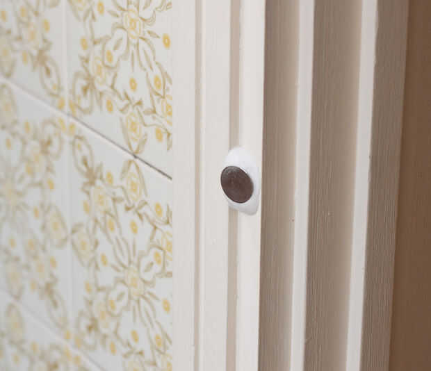 Sugru estos imanes tienen un pequeño punto en una superficie, revela la polaridad del imán. Para obtener fuerza repulsiva tienes que enfrentar dos caras idénticas (con o sin punto). Coloque algunos Sugru en la pared (tenía que poner en el marco de la puerta) entonces empuje el Sugru el segundo imán con la orientación correcta. Con los dedos empuje Sugru todo alrededor del imán.