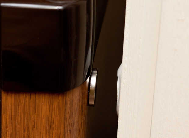 Ya que todavía puede mover un poco el segundo imán, compruebe su posición relativamente a la primera. Muy importante es que los imanes son coplanares. Si no pudieran vino en tacto y freno. Para comprobar la coplanaridad Abra la puerta y poner los imanes cerrar, no demasiado porque Sugru aún no está seco. Si usted debe mover el segundo imán para cambiar su posición o planaridad.