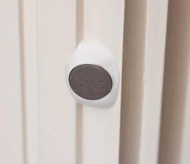 Cuando esté seguro de que posiciones tienen razón puede limpiar la superficie de Sugru con una esponja mojada, así que para suavizarlo. Deje secar por una hora luego intente abrir la puerta. No destruir, porque si la puerta es pesada (o todavía tiene un montón de cervezas en la puerta de la nevera) su inercia podría derrotar fácilmente la repulsión de los imanes. Si eso sucede usted puede Agregar un parachoques de goma transparente en un imán, sólo para la caja fuerte.