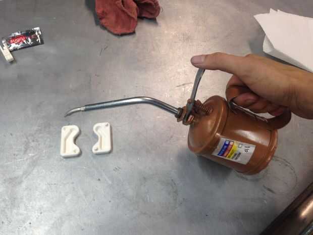 Lubrique las superficies del molde con aceite para asegurar que el Sugru no se pega a cualquier cosa que no se supone que. Utilicé aceite de máquina, pero va a hacer ningún tipo de aceite. Extenderlo uniformemente sobre todo potencialmente Sugru-superficies de contacto.
