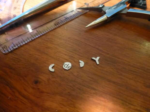 Rastrear los dibujos o letras que desea realce en el plástico delgado. (Utilicé cartulina de la caja del tejido, como puede verse en las fotos. Esto es una mala idea, como cuando vas a quitar los sellos de la pulsera, tienden a pegarse. Utilizar plástico si tienes it)