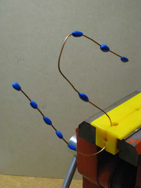 Coloque la vaina terminada en un lugar seguro para curar.  Lo puse en un tornillo de banco para que los nodos no aplanados o deformados de la reclinación sobre una superficie, pero esto puede ser excesivo.