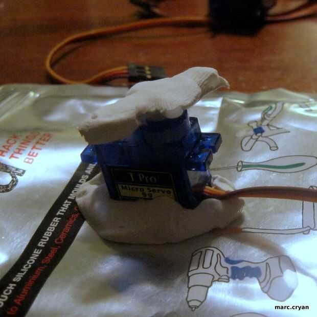Utilizar Sugru como pegamento y soportes - pack Sugru alrededor de los brazos de servo.
