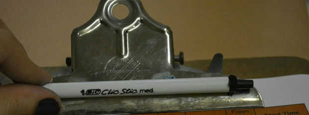 Decidir donde en el portapapeles de tu pluma encajará mejor. Marque las ubicaciones de Sugru óptima.