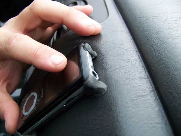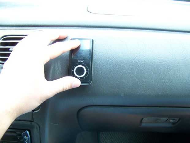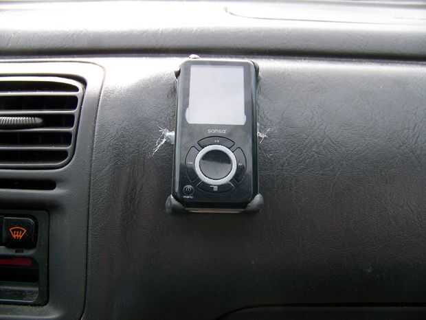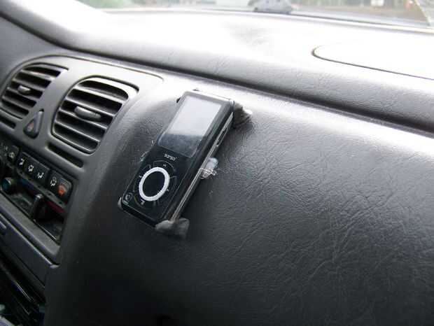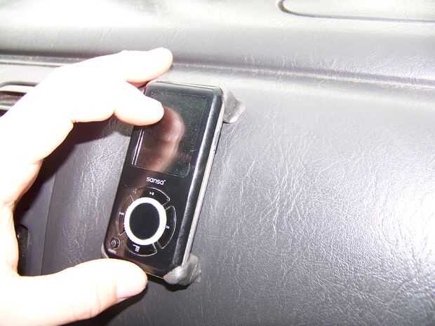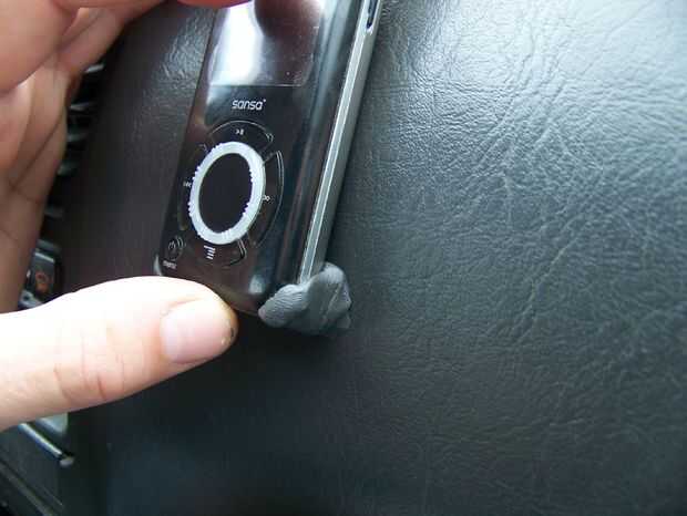 Coloque el reproductor de mp3 en su lugar. Tomando el resto de la sugru, construir cada esquina hasta que descanse firmemente sobre el tablero. Alise los bordes y presione contra el tablero de instrumentos (véase las fotos abajo).