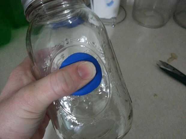 Primero, sujete el frasco y ver donde cae el dedo pulgar. Entonces dijo pulgar y poner la bola de sugru bajo y smoosh hacia abajo. Aplane la gota hacia abajo, presionando contra la jarra y empujando hacia arriba y alrededor de su dedo pulgar para crear un canto. Esto formará el pulgar.