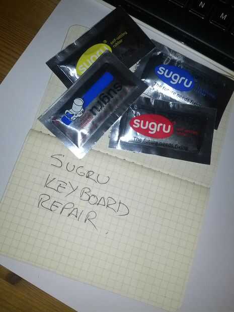 la tecla "Ctrl" de mi teclado, estaba rota. No sólo fue separado del teclado pero también fue roto desde el centro. Lo que hice fue unir, con Sugru, dos piezas, y luego pegué el teclado en el lugar (con pegamento normal). Trabaja.