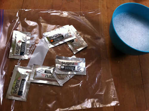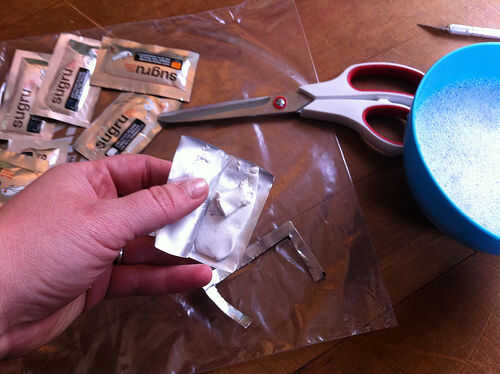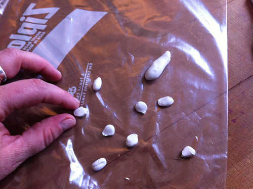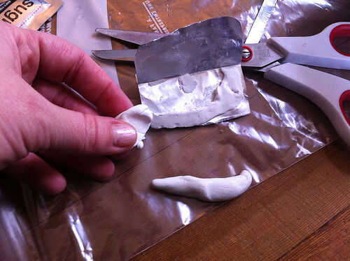 Abrir los paquetes de Sugru blanco (es más fácil de usar tijeras) y amasar Sugru con los dedos mojados. Dividir el Sugru blanco por la mitad. Establecer una mitad a un lado y la otra mitad en varias secciones más pequeñas se dividen.