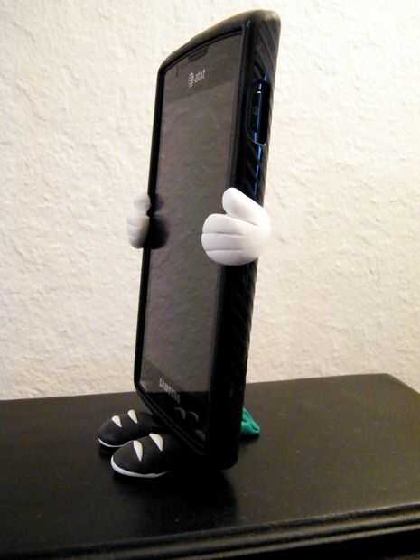 Encontré Sugru a ser tan fácil de usar como cualquier horno hornear arcilla del polímero, sólo mucho más suave y más flexible. Se supone que se adhieren a casi todo pero tengo un sentimiento mi cubierta del teléfono está hecho de algo que se resiste a * todo *. Incluso he intentado plata Sharpie metálico en él pero que fácilmente frota. Hasta ahora la Sugru parece tener bien. Originalmente había até Sugru a cada lado de la parte superior del teléfono para actuar como titulares de brote de oído por lo que podría tener un lugar práctico para almacenarlos iba a poner alas cortas en la parte posterior del teléfono para usar como la envoltura del cable, y los titulares de brote de oído no resultan bien por lo que quité después de unas 12 horas tiempo de la curación. Soy receloso de la facilidad la Sugru salió aunque quitar el acabado un poco tal vez las cura adicional tiempo asegurado cosas mejor. Vamos a ver!