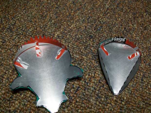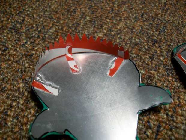 Pegamento de un lado de cada escuadra metálica en la parte posterior (el lado con tinta) de cada juego de dientes. Colocar un soporte en cada extremo de cada juego de dientes y de los soportes restantes en el centro, espaciados como le parezca. A continuación, pegar el otro extremo de cada soporte en la sección de dientes largos para el lado no recubierto de Sugru de la "parte superior". Pegar el conjunto menor de dientes en la parte "inferior" de la misma manera. Mira las fotos para más detalles sobre la colocación de los dientes.
