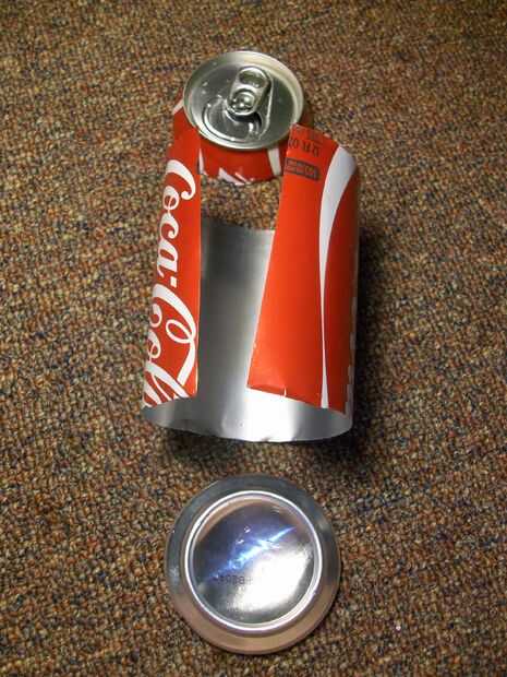 En primer lugar, beber el contenido de la lata si no está vacía.  En segundo lugar, con cuidado corte la parte superior de la can a partir donde el poder se dobla en hacia arriba.  En tercer lugar, cortado verticalmente por el lado de la lata (que ahora es más parecido a una taza); cortar todo el camino hasta donde el poder se dobla en hacia la parte inferior.  Corte la parte inferior de la lata del mismo modo que corta la parte superior.  Ahora tienes una bonita pieza rectangular de aluminio.  Último, enjuague de esta pieza de aluminio, dejar la parte inferior de la lata y disponer de la parte superior por reciclarla.