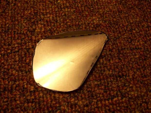 Doblar las piezas de "cola" y "fin" por la mitad para que coincidan las mitades del espejadas.  Puede ser necesario cortar las piezas una vez dobladas para asegurar que los lados son perfectamente incluso.