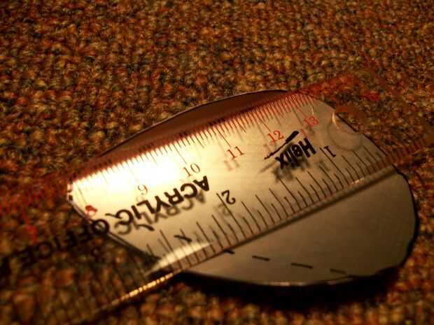 Doblar la pieza "base" para un ángulo de 90 grados a lo largo de la línea punteada.  La mejor manera de lograrlo es establecer una regla a lo largo de las líneas de puntos uno a la vez y doblar el metal contra el gobernante.