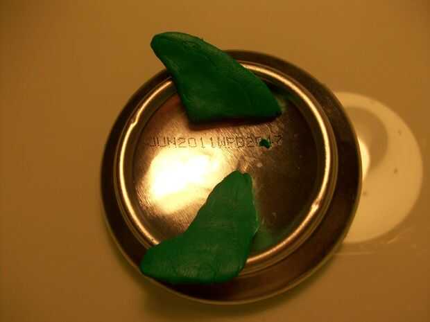 Cubrir ambos lados de la "cola" y "fin." Una vez que se cubre cada pieza, colocar cuidadosamente dentro de la parte inferior de la lata o en cualquier otro lugar conveniente. Lo importante no es establecer cualquier pieza plana contra cualquier superficie porque la Sugru podría pegarse a la superficie.