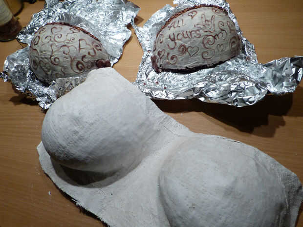 hice un traje leche y galletas para una fiesta de tema próximo: sexo y dulces.Sujetador:Usé un viejo sujetador color carne que empapado en un bote fuerte de café durante unas 2 horas para que el color se vería más galletas-esque.Después de cosido a m