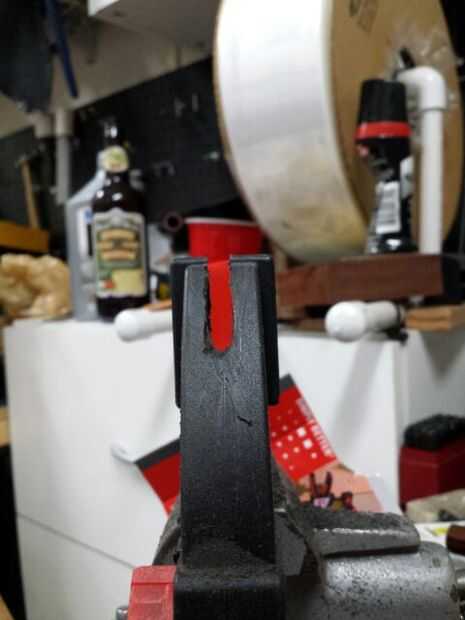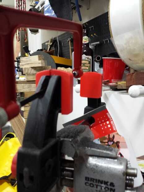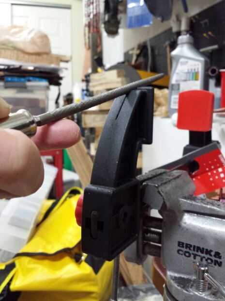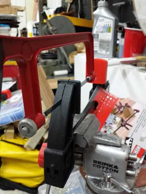 Esta abrazadera viene directamente de libro Joe Keeslar, MS Handles & guardias y se muestra a todo el que toma esa clase ABS. Busqué alrededor de la pinza derecha madera de fabricación por un tiempo antes de encontrar a la derecha en. La ranura de la pinza es de 1,25 a 1,5" dependiendo del tamaño de los cuchillos que hace. Hago mi hendidura. 25" de ancho. Utilizo un mini arco de sierra para el corte de guía y un. 25" Lima escofina para completar el corte de redonda. Cortar la ranura en el cojín después he terminado el corte base.