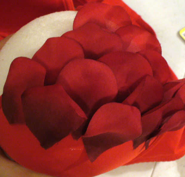 Después de la primera pocas capas de pétalos son, puede que sea más fácil voltear la Copa boca abajo para facilitar colocación de pétalos. (Ver foto 3)