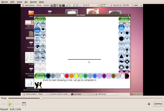 Desde el lado izquierdo de la línea horizontal, un círculo que interseca con el lado derecho de la línea horizontal.