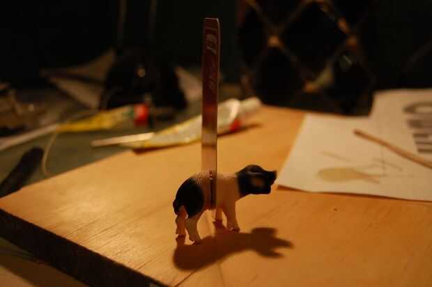 El concepto es fácil: cortar una estatuilla animal (o casi cualquier figura sólida) por la mitad, perfore unos agujeros y pegar en imanes. Los imanes ejercen fuerza suficiente para unir las dos mitades y soportan el peso de objetos finos (como fotos).