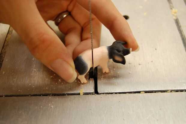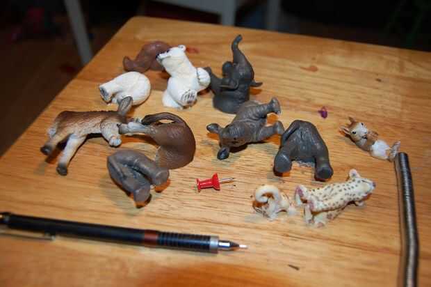 Para cada animal, piense cuidadosamente en la dirección del corte. Algunos animales están mirando hacia la izquierda o hacia la derecha, usted puede cortar en un ángulo para que el animal y la foto son ambos frente a algo en la misma dirección. También ten cuidado de no cortar ningún pies, colas u otras partes del cuerpo que no están firmemente sujeta al cuerpo en dos mitades! Habrá algunas figuras que simplemente no se puede utilizar para ello; sólo hay una manera de cortar limpiamente en dos.